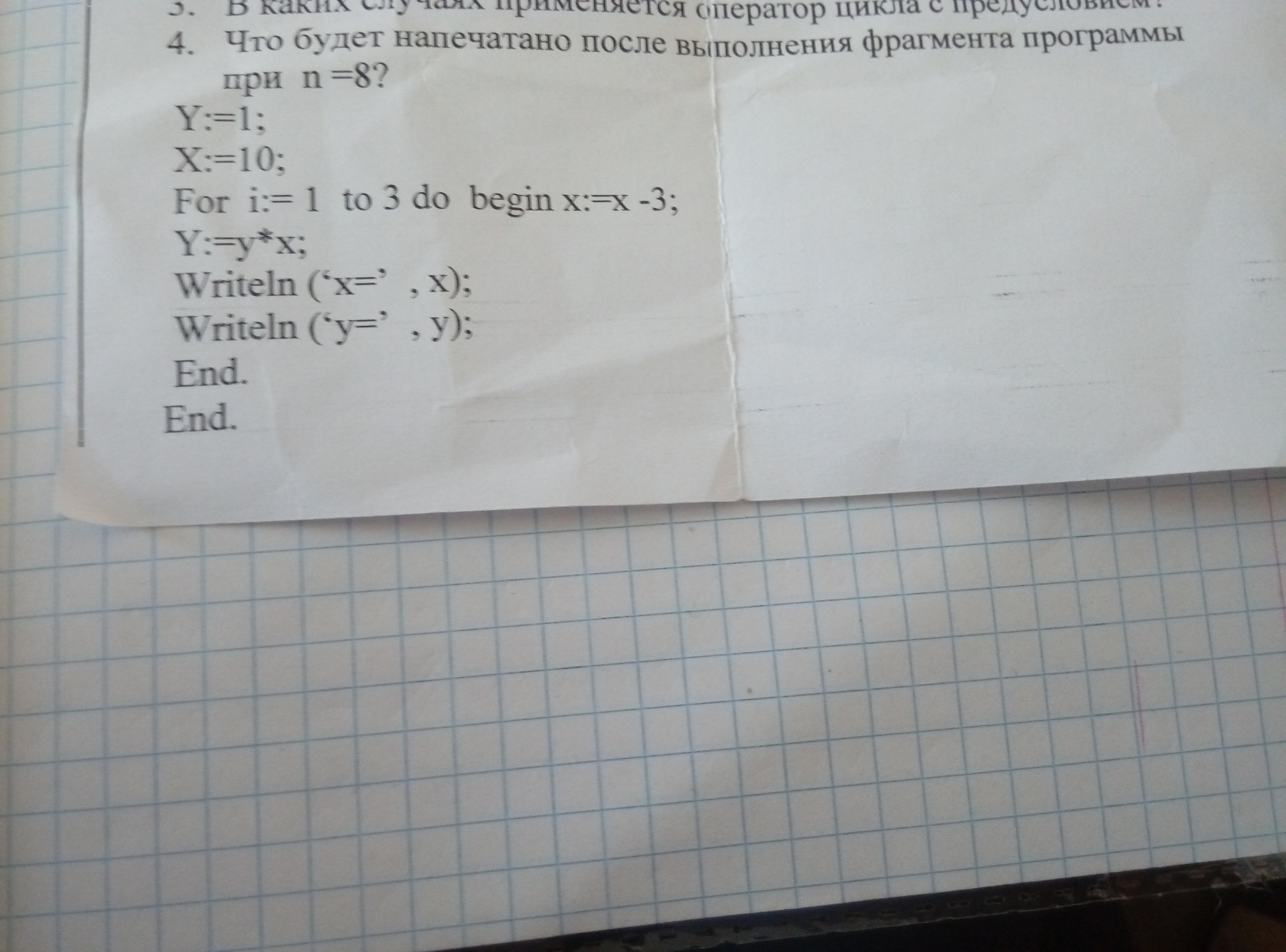 В фрагменте программы опечатка. На предпоследнем end нужна точка с запятой. Не знаю что такое n = 8, т.к. в программе ее нигде нет. Выведено будет следующее.