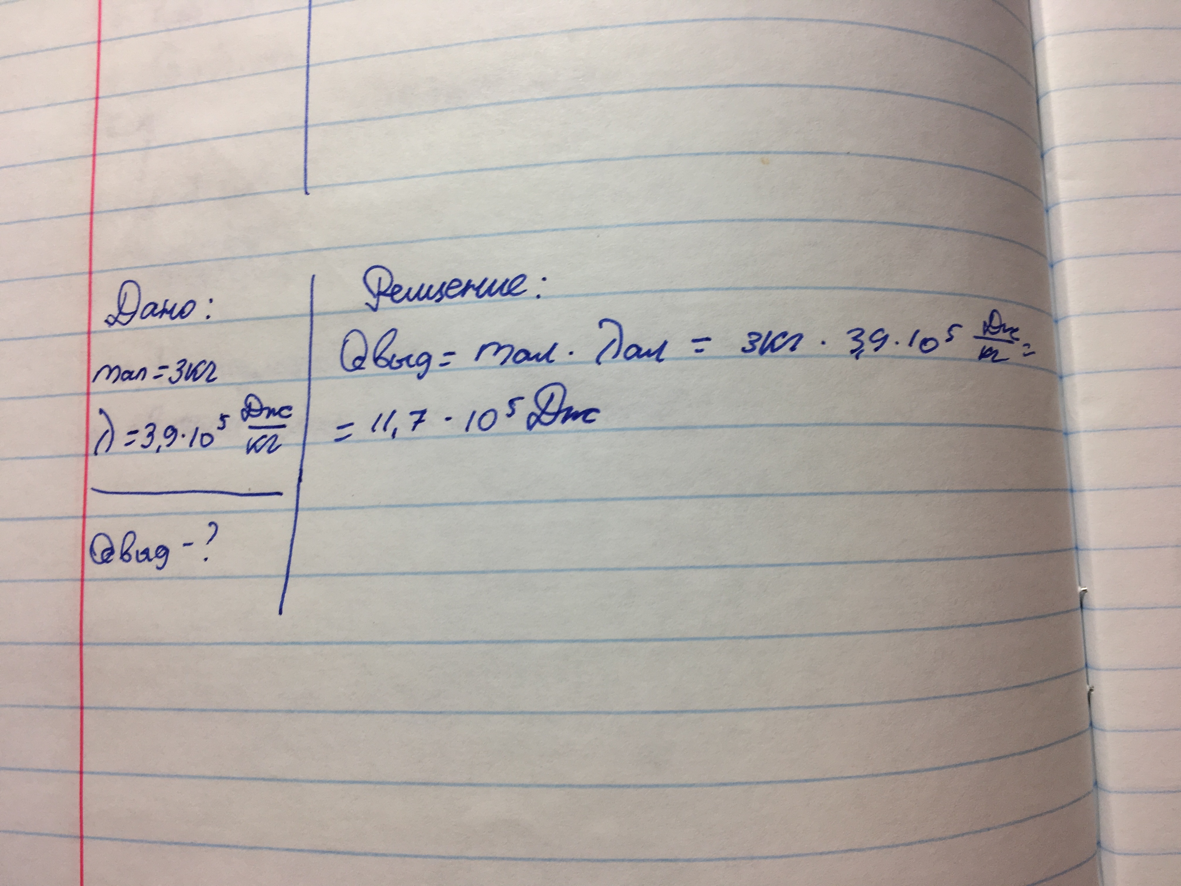 Сколько тепла (в кДж ) выделяется при кристаллизации 3 кг плавленного алюминия? Удельная теплота плавленного алюминия 3,9 * 10 в 5 степени Дж/кг