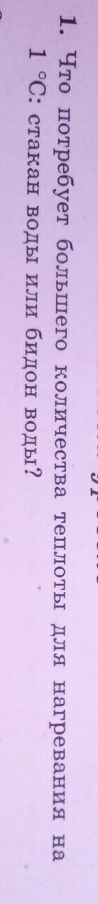 1)Что потребует большего количества теплоты для нагревания на 1 градус:стакан воды или бидон воды