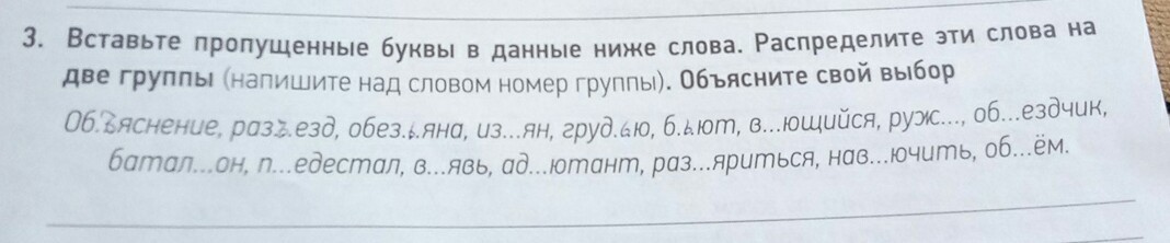 Объяснение, разъезд,изъян,объездчик,разъяриться,объём,въявь,адъютант.