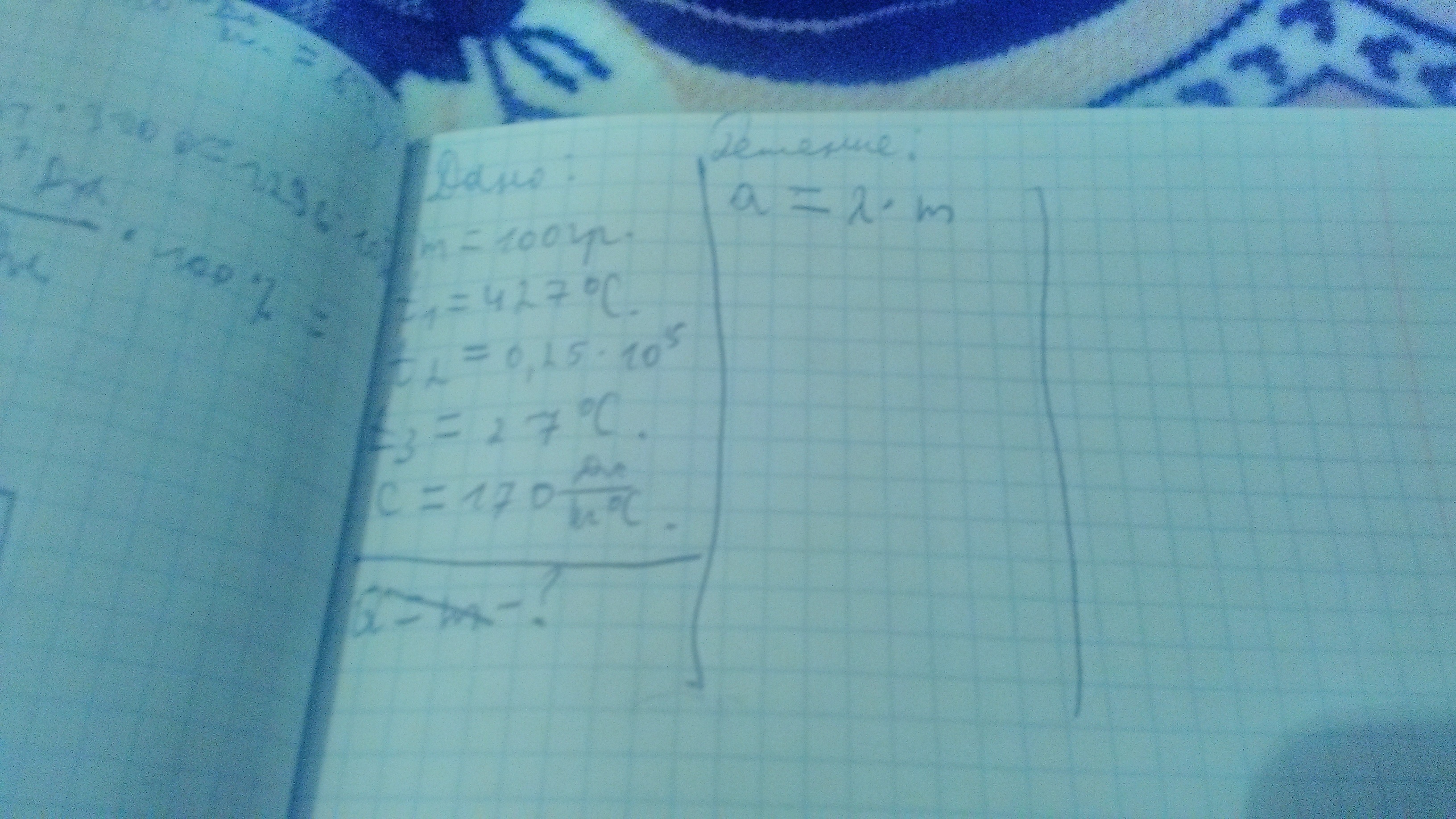 если данные правильные то,Q=-cmdelt( отриц так как tконечная-tначальная равняются отриц значению)следовательно в данной задаче идет охлаждение Q=170 *(-400) *0,1=−6800
