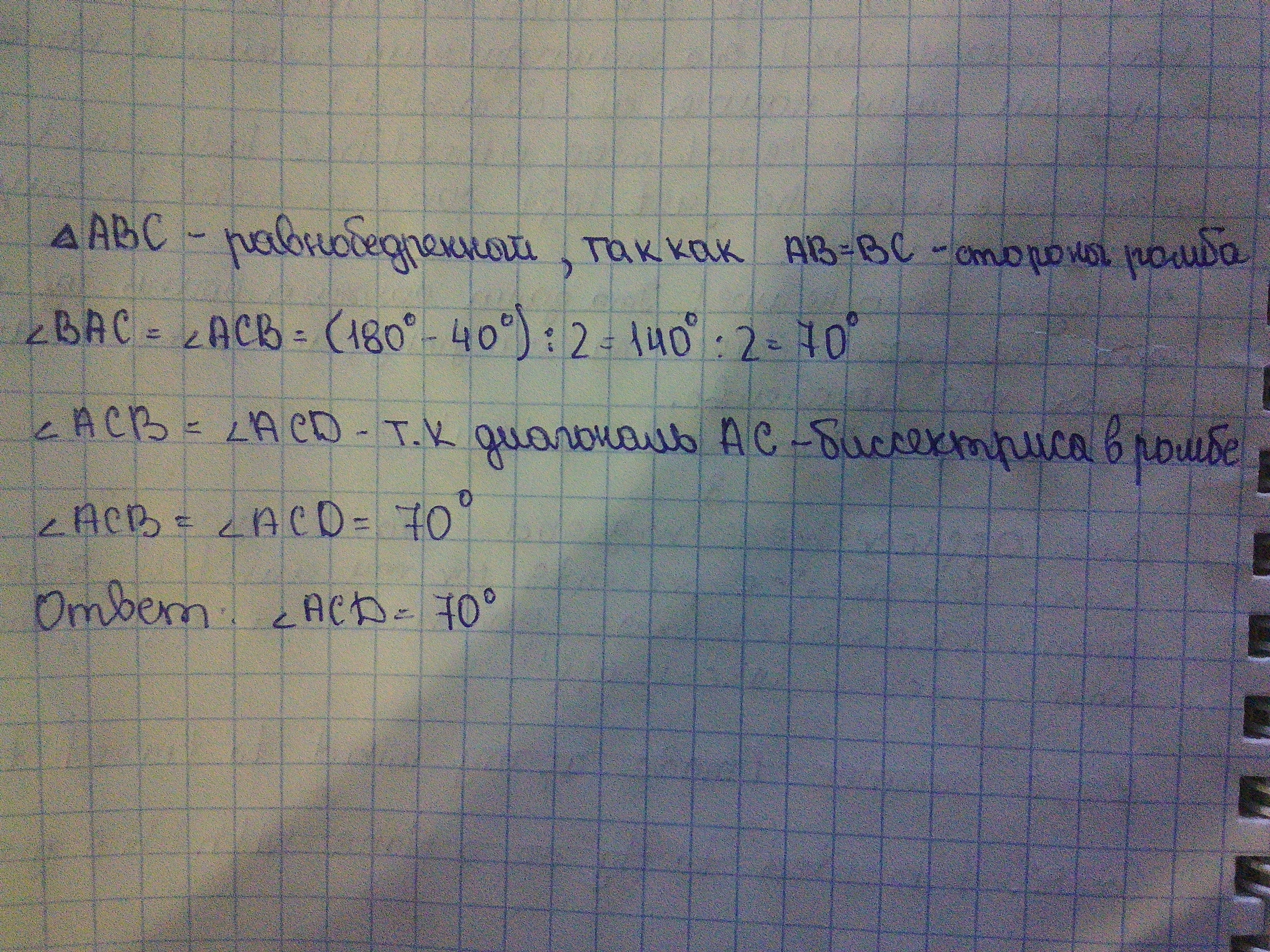 Держи! Треугольник ABC - равнобедренный, так как AB=BC -стороны ромба