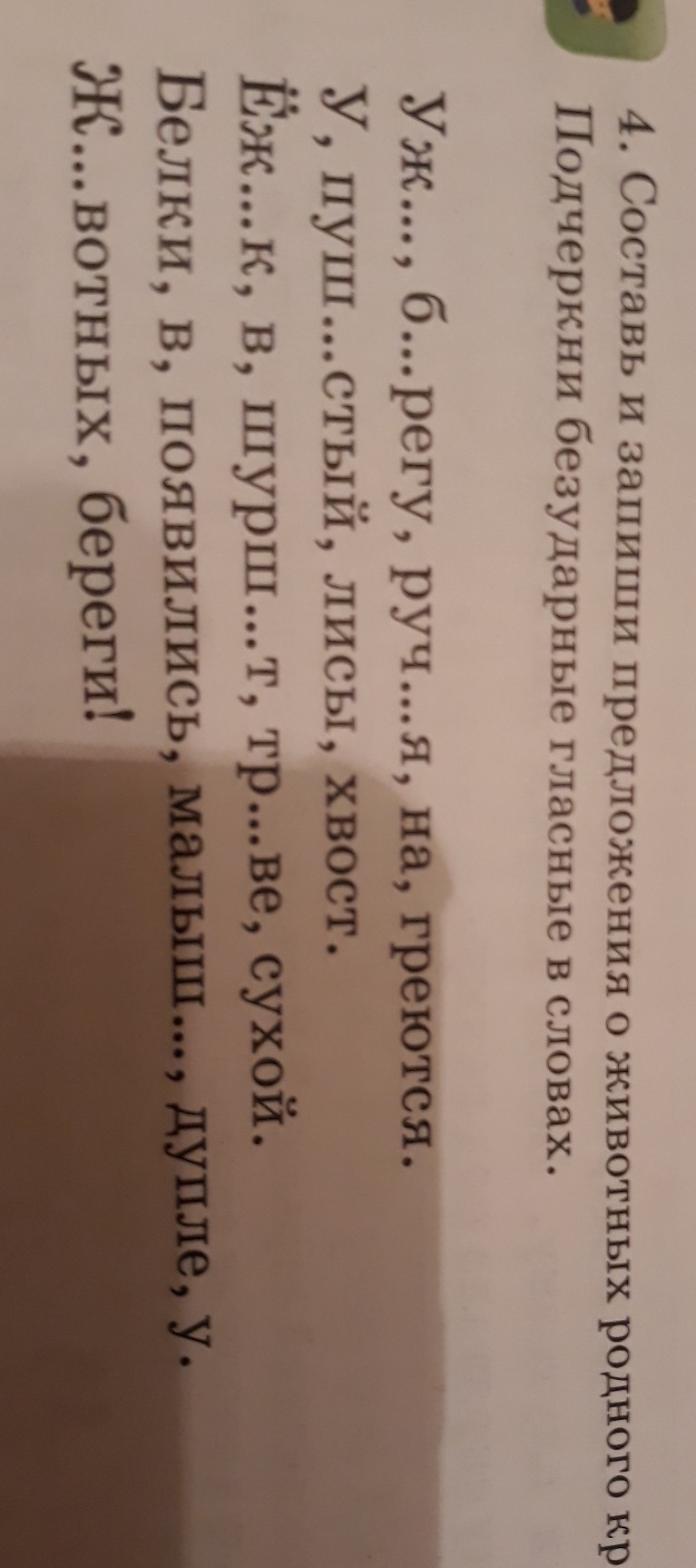 Составь и запиши предложения о животных родного края подчеркни безударные гласные в словах