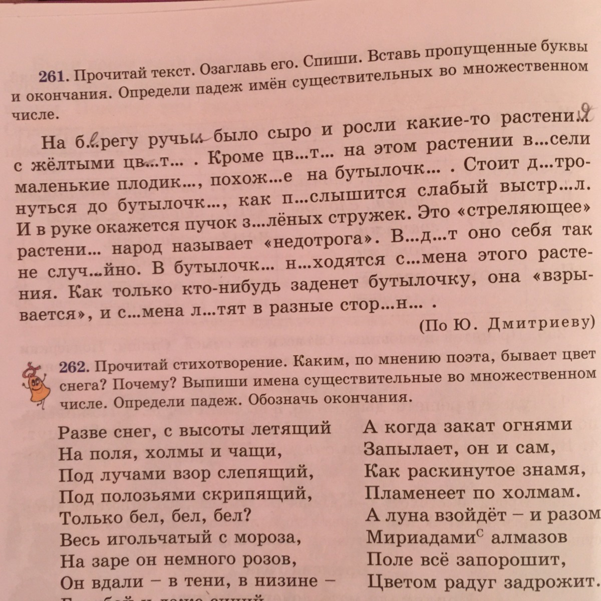 Прочитай текст озаглавь его спиши вставь пропущенные буквы и окончания определи падеж имён существительных во множественном числе