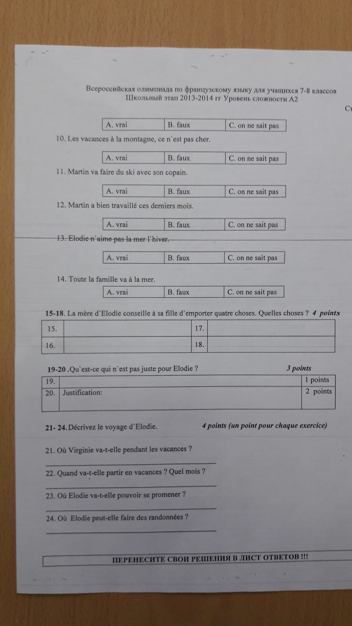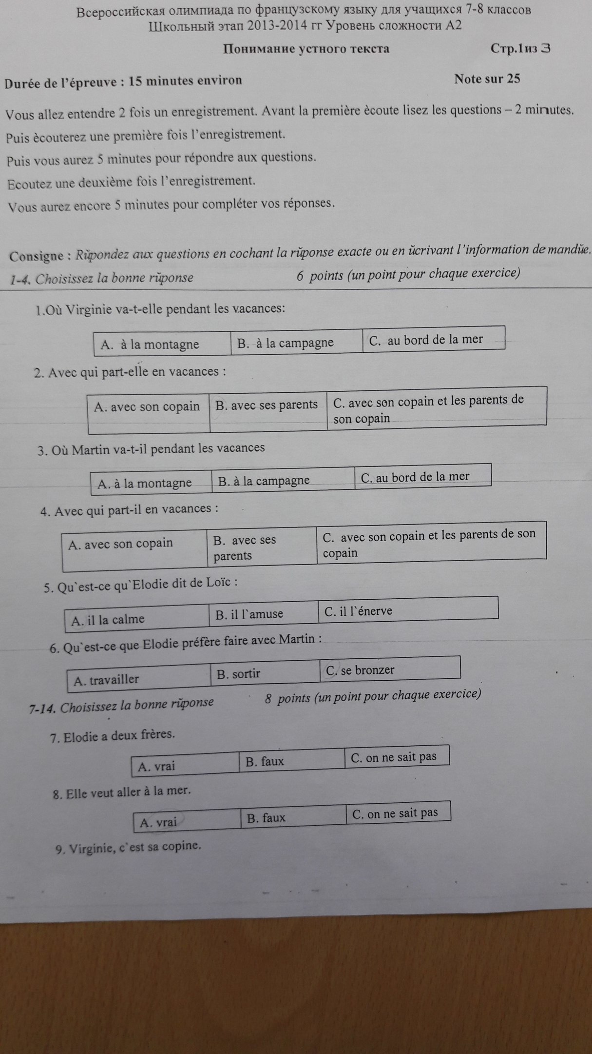 Аудирование по французскому языку. Сам устный текст вставить не могу, но если встречались с этим, то помогите пожалуйста