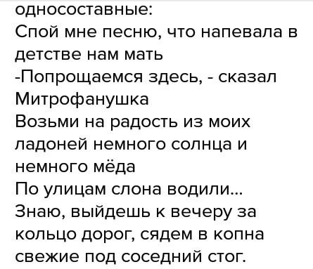 Выписать из любого художественного произведения по 3 предложения под каждую из групп односоставных предложений. Помогите пожалуйста