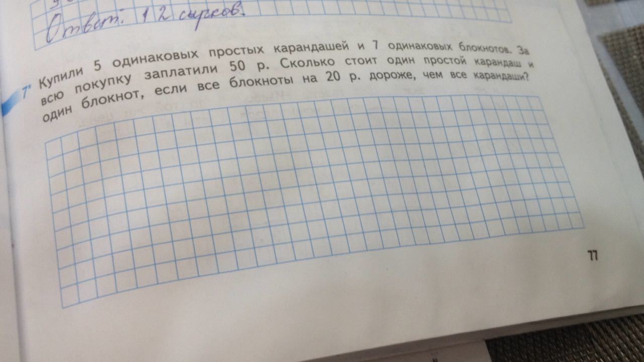 15:5=3 р стоит простой карандаш