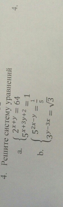 b.{ 5^2x-y=5^-1 {2x-y=-1 { y=1+2x { x=1/2