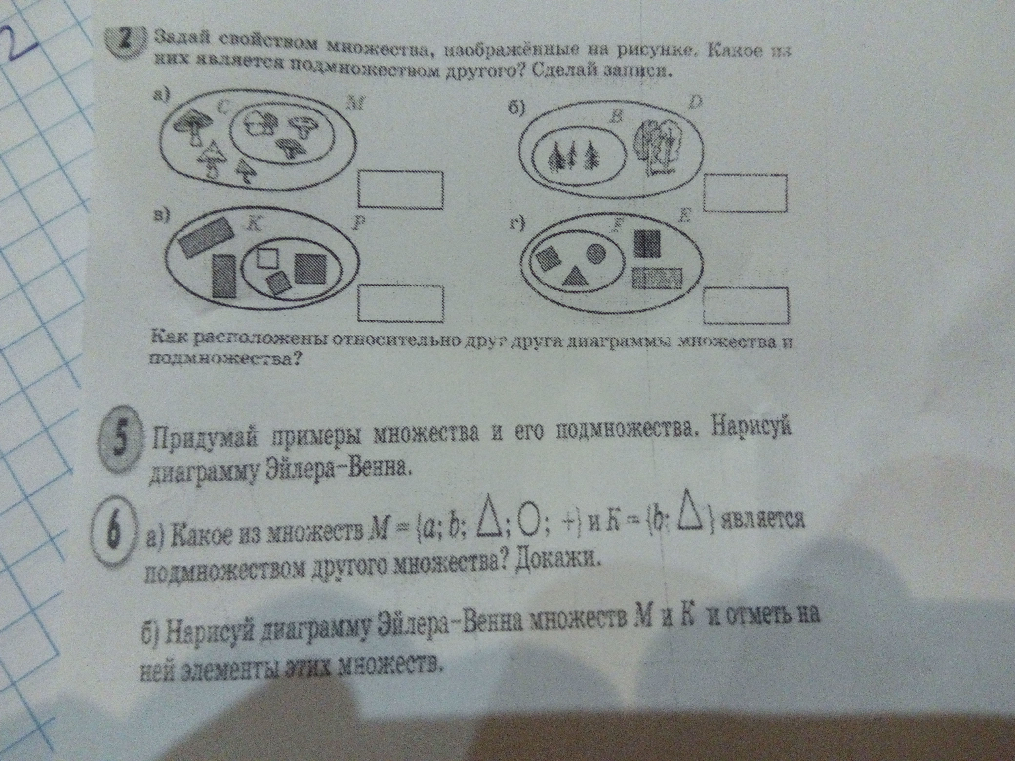 К -является подмножеством М. Так как элементы множества К есть во множестве М.