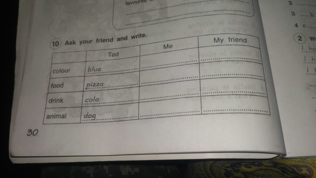 Напиши свой любимый цвет еду напиток и животное под частью «me» и любимый цвет еду напиток и животное твоего друга под частью “friend “