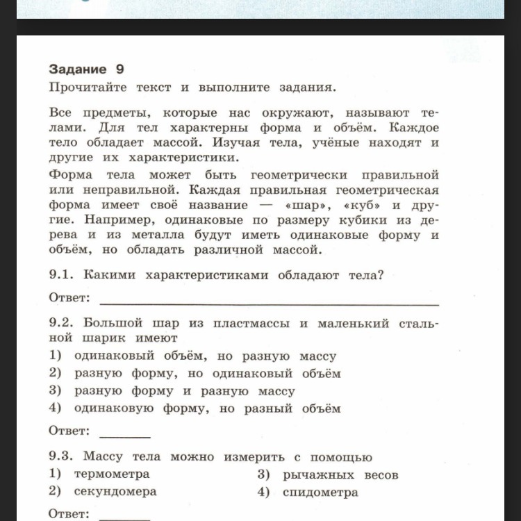 1. Для тел характерны форма и объём. Каждое тело обладает массой.