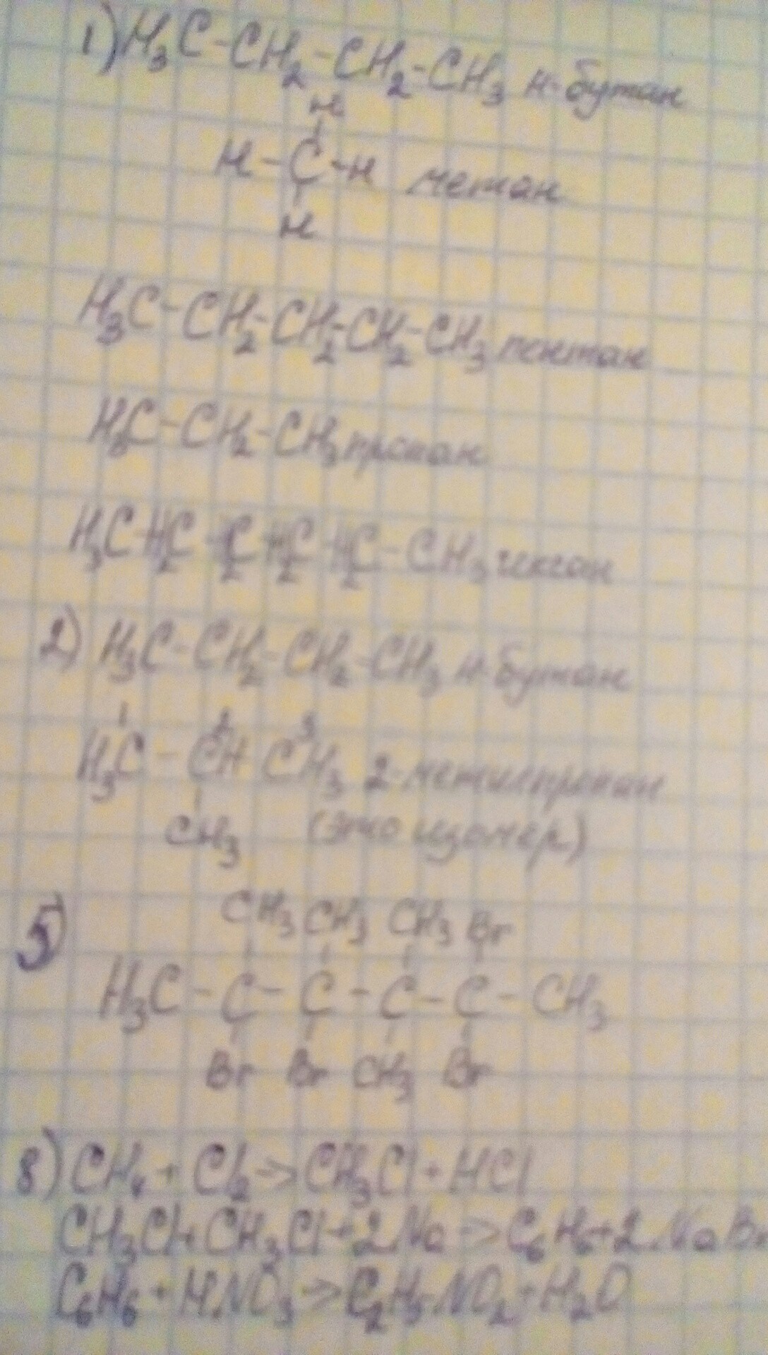 2. Для углеводова C4H10 составьте структурную формулу одного изомера и двух гомологов. Назовите вещества.