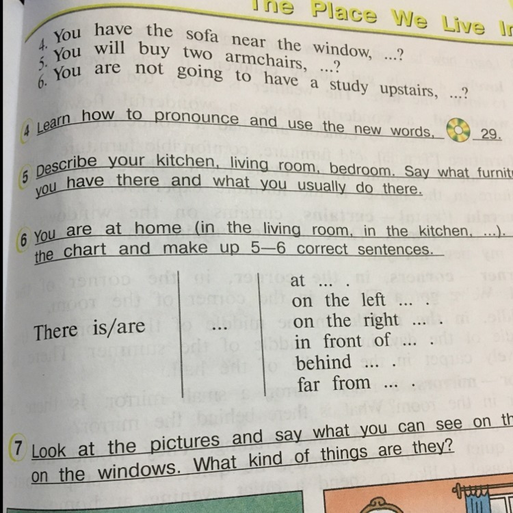 You are at home (in the living room, in the kitchen, ...).Use the chart and make up 5-6 correct sentence. Упражнение #6