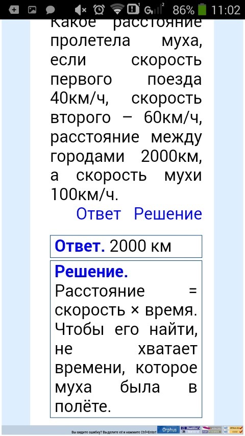 Два поезда одновременно выехали навстречу друг другу. На стекле одного из них сидела муха. В тот момент,когда поезда тронулись,она взлетела и полетела к другому поезду. Долетев до него,она тут же развернулась и полетела обратно и т. д. Так она летала как угорелая до тех пор,пока поезда не столкнулись и не раздавили муху. Какое расстояние пролетела муха,если скорость 1 поезда 40км в час,скорость 2 поезда 60 км в час,расстояние между городами 2000 км,а скорость мухи 100 км в час?