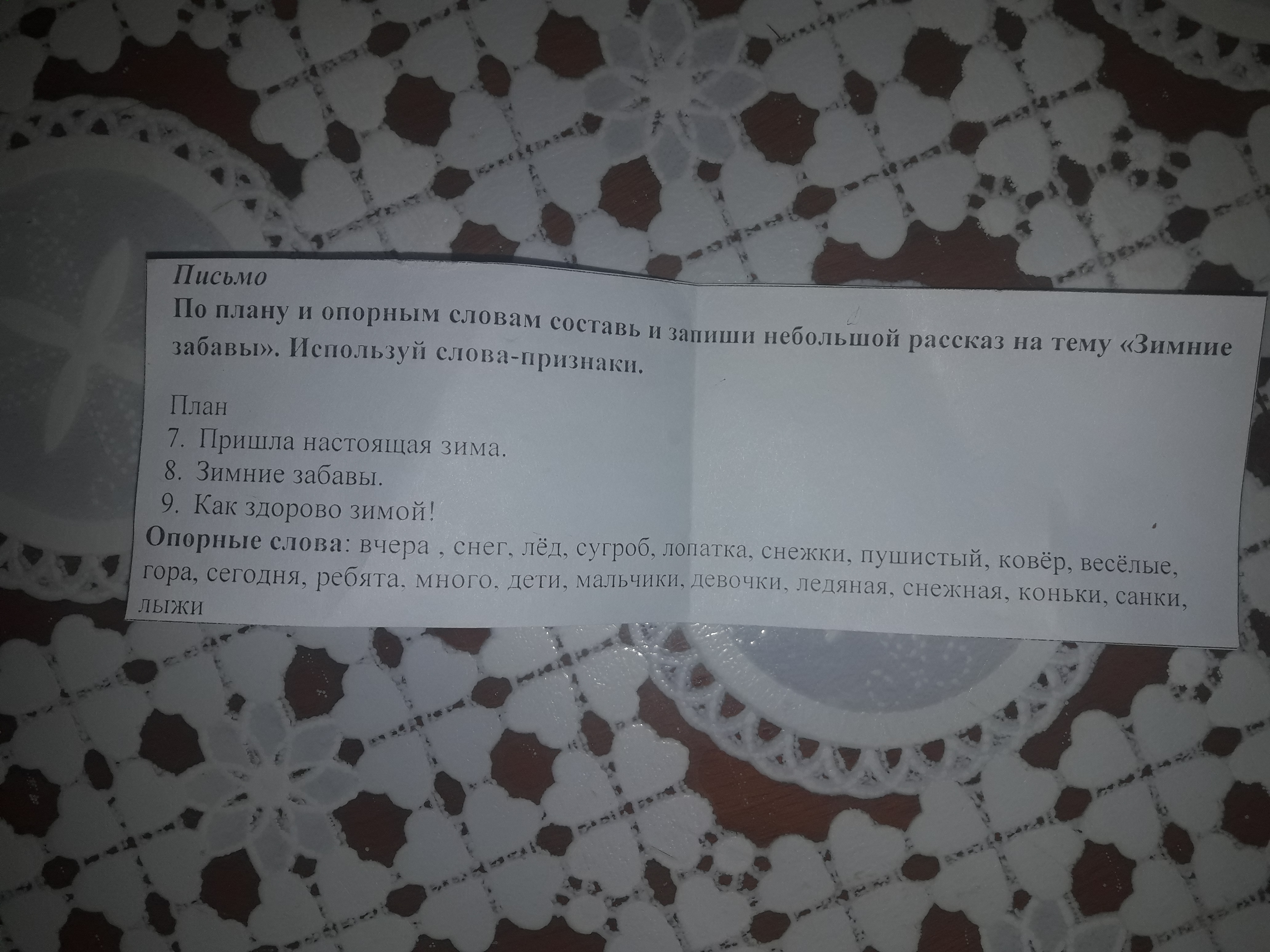1.Вчера как будто какой-то волшебник, рассыпал маленькие белые звёздочки по бледной земле. Снег укрывал все вокруг, а под этим снегом был маленький, тоненький слой льда. Появились сугробы, Земля была похожа на большой, белый, пушистый ковёр.