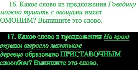 16. Какое слово из предложения Говядину можно тушить с овощами имеет ОМОНИМ? Выпишите это слово.