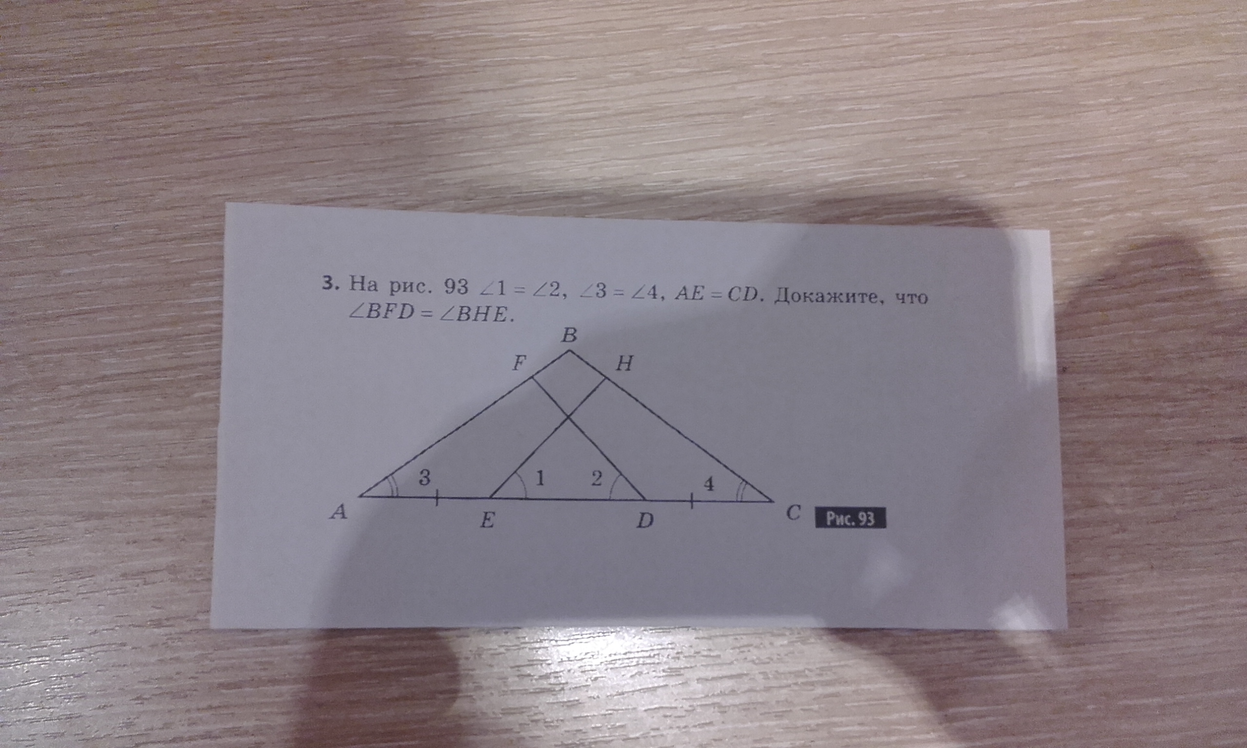 BFD = FDE - т.к. накрест лежащие, а BHE = HED - тоже потому что накрест лежащие, а так как HED = FDE равны по условию, то и углы BFD и BHE тоже равны