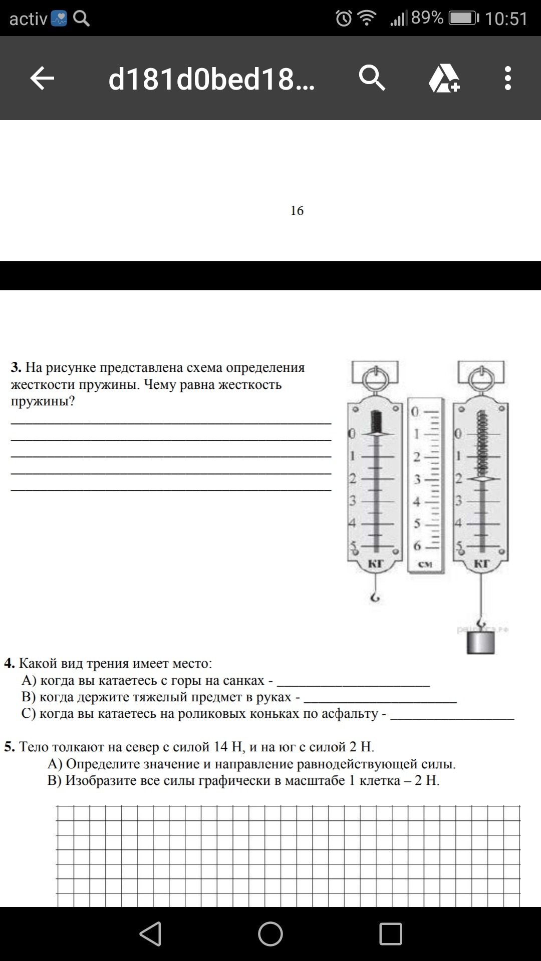 Правый динамометр ( безмен) m=2кг F=mg=2×10=20ННа пружину действует сила тяжести и она уравновншивается силой упругостиСмотри на линейку разница пустого и груженного 3-1=2см=0,02мF=kxЖесткостьk=F/х=20/0,02=1000Н/мОтвет 1000Н/м