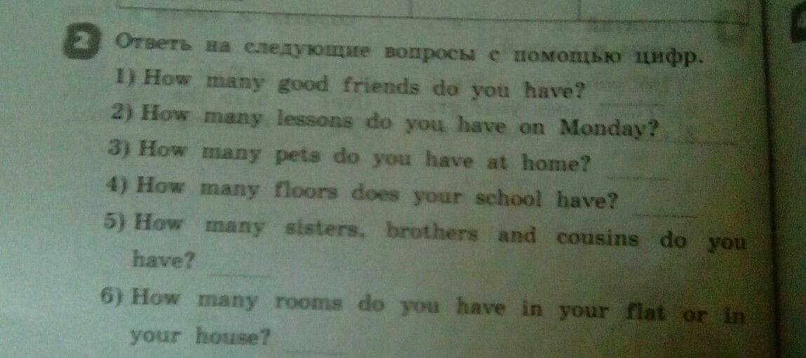 2) Сколько уроков у тебя в понедельник?