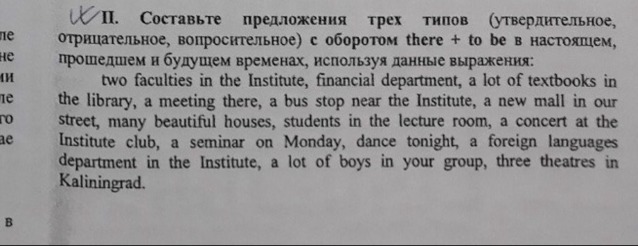5. There isn't a bus stop near the Institute. ( наст.вр. отриц.)
