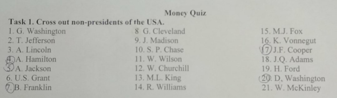 8, 10, 13, 14, 15, 16 , 17, 19, 20 не были президентами Америки