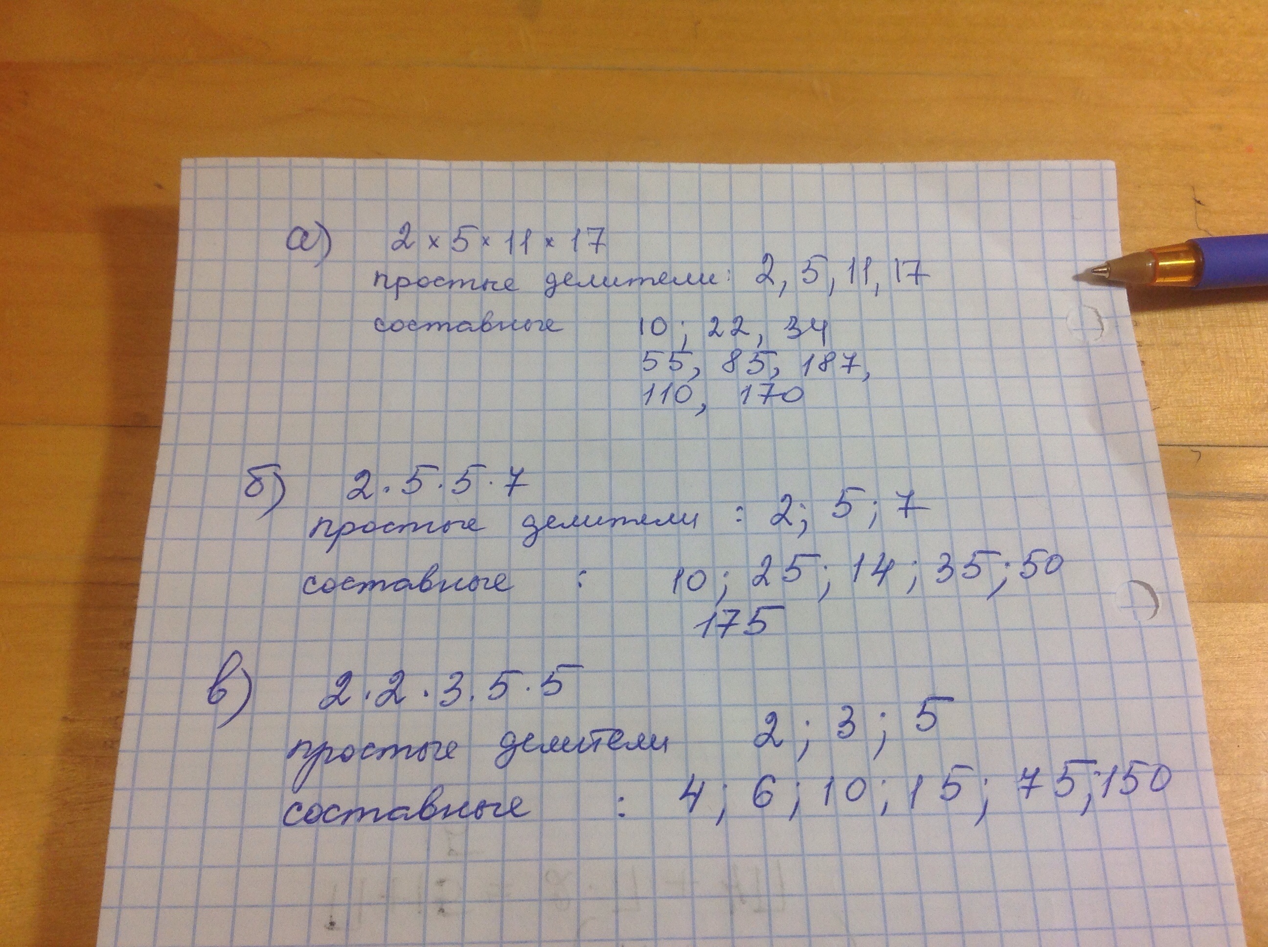 а)2*5*11*17 б)2*5*5*7 в)2*2*3*5*5