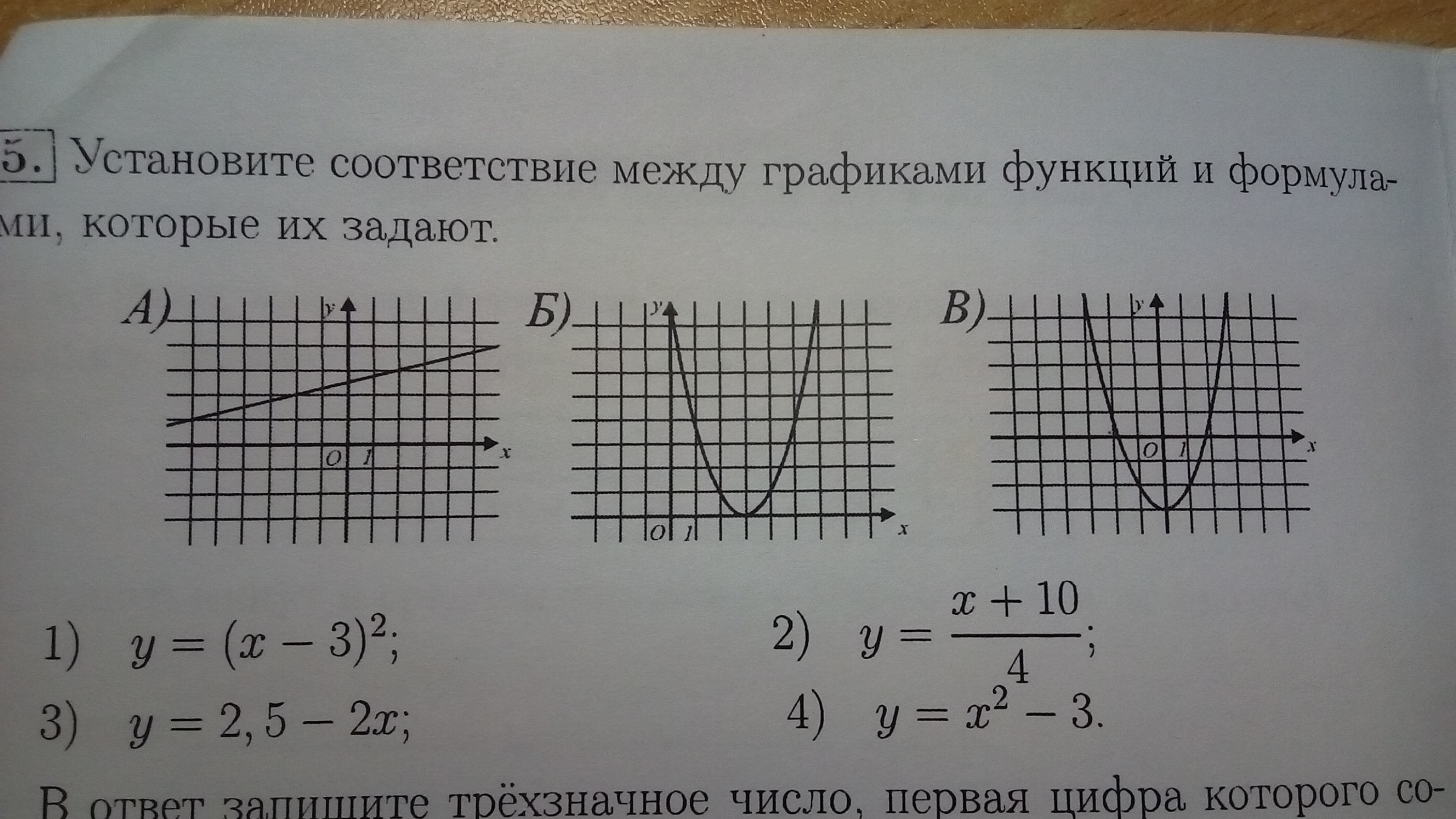 Установите соответствие между графиками функций и формулами, которые их задают.