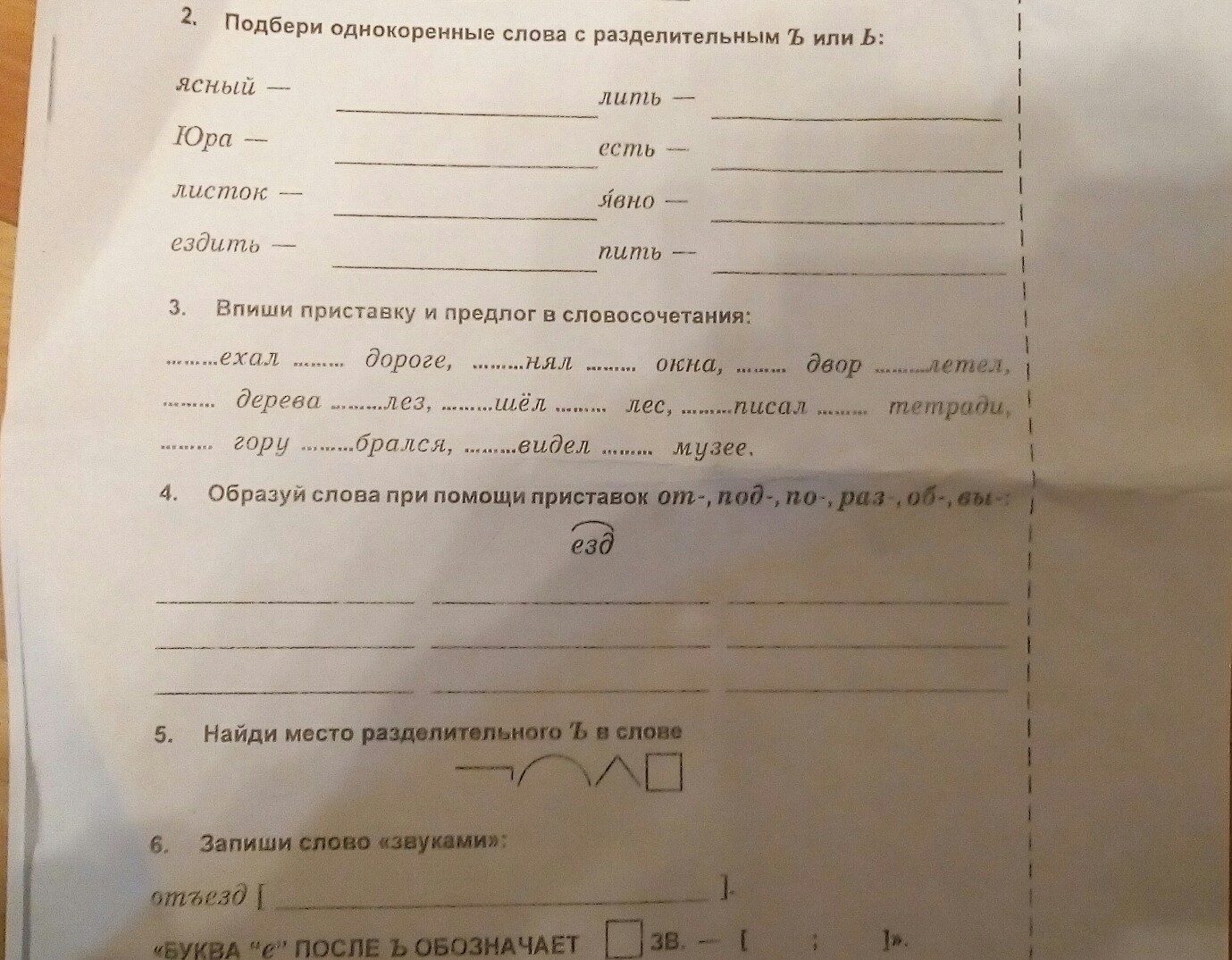Уехал по дороге. Снял с окна. Во двор влетел. С дерева слез. Пошёл в лес. Написал в тетради. На гору забрался. Увидел в музее.