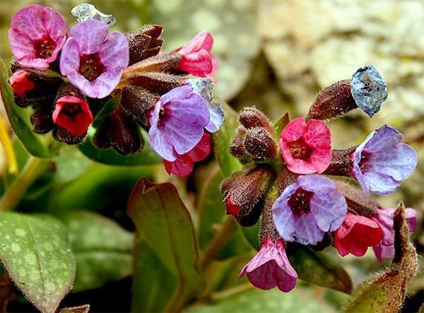 На фото изображена медуница неясная. Изменение цвета объясняется изменением кислотности клеточного сока в венчиках цветков медуницы (клеточный сок в бутонах и молодых цветках имеет кислую реакцию, но ближе к концу цветения становится слабощелочным) и связано со свойствами красящего вещества, антоциана: кислые растворы, в которых он содержится, — розовые, щелочные — синие