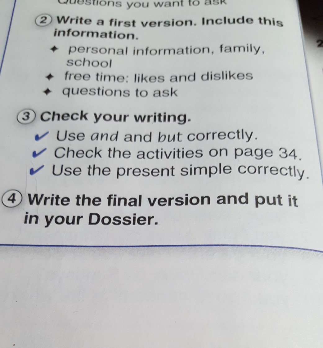 Проверьте свое письмоИспользуйте И и НО правильно .Проверьте действия на странице 34 .Правильно используйте настоящее простое.