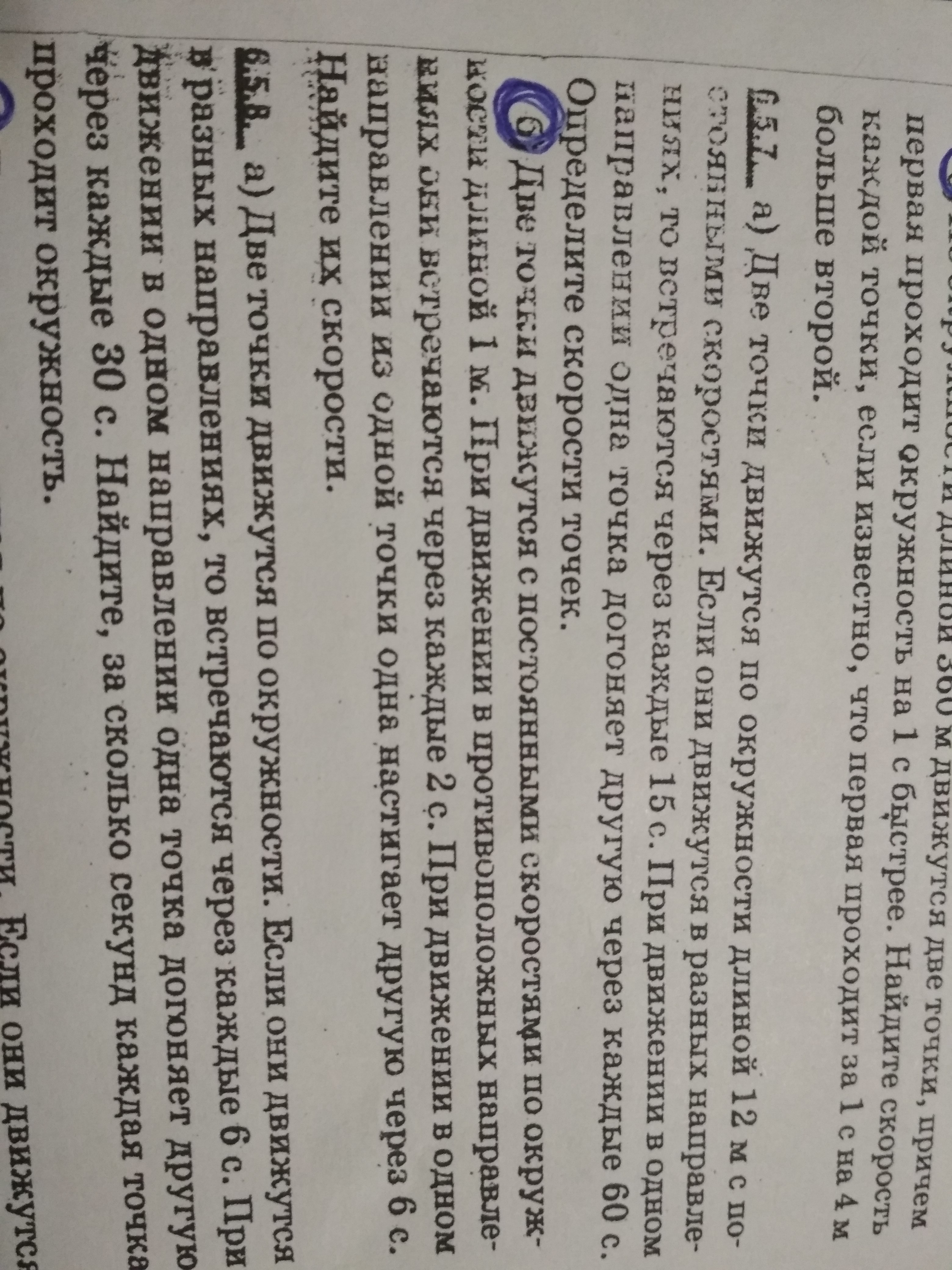 Две точки движутся постоянными скоростями по окружности длиной 1 м. При движении в противоположных направле- oьи встречаются через каждые 2 с. При движении водном направлении одной точки одна настигает другую через 6 с.най ите их скорости
