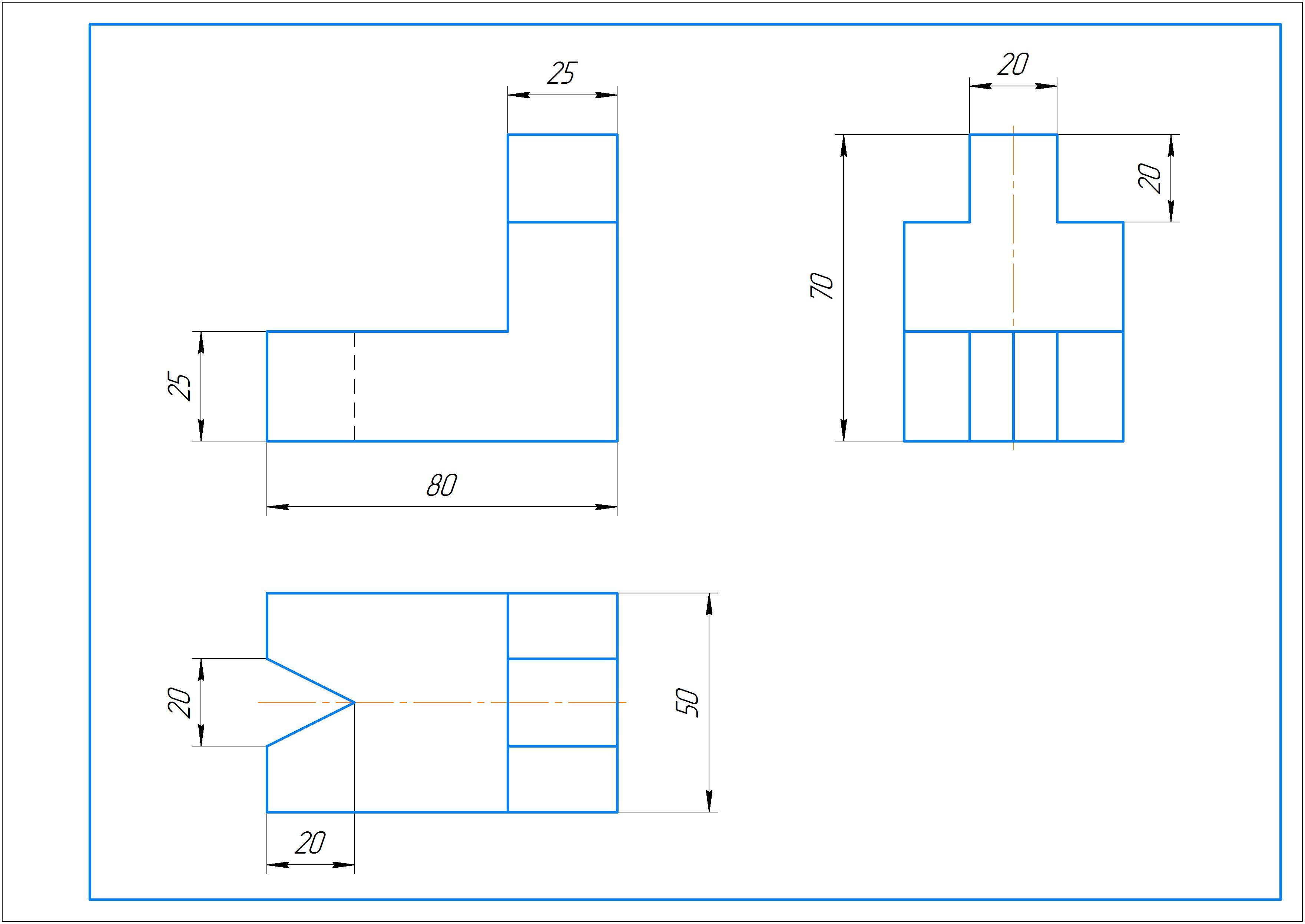 Деталь в трех проекциях представлена ниже. В масштабе 1:1 на формате А4