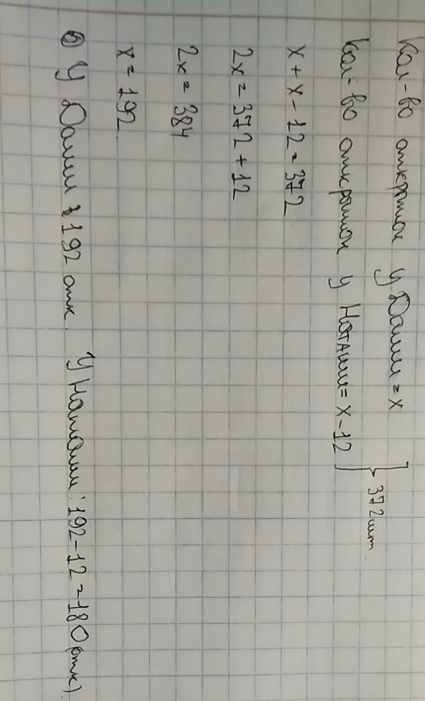 у даши и наташи вместе 372 открытки,причём у даши на 12 открыток больше,