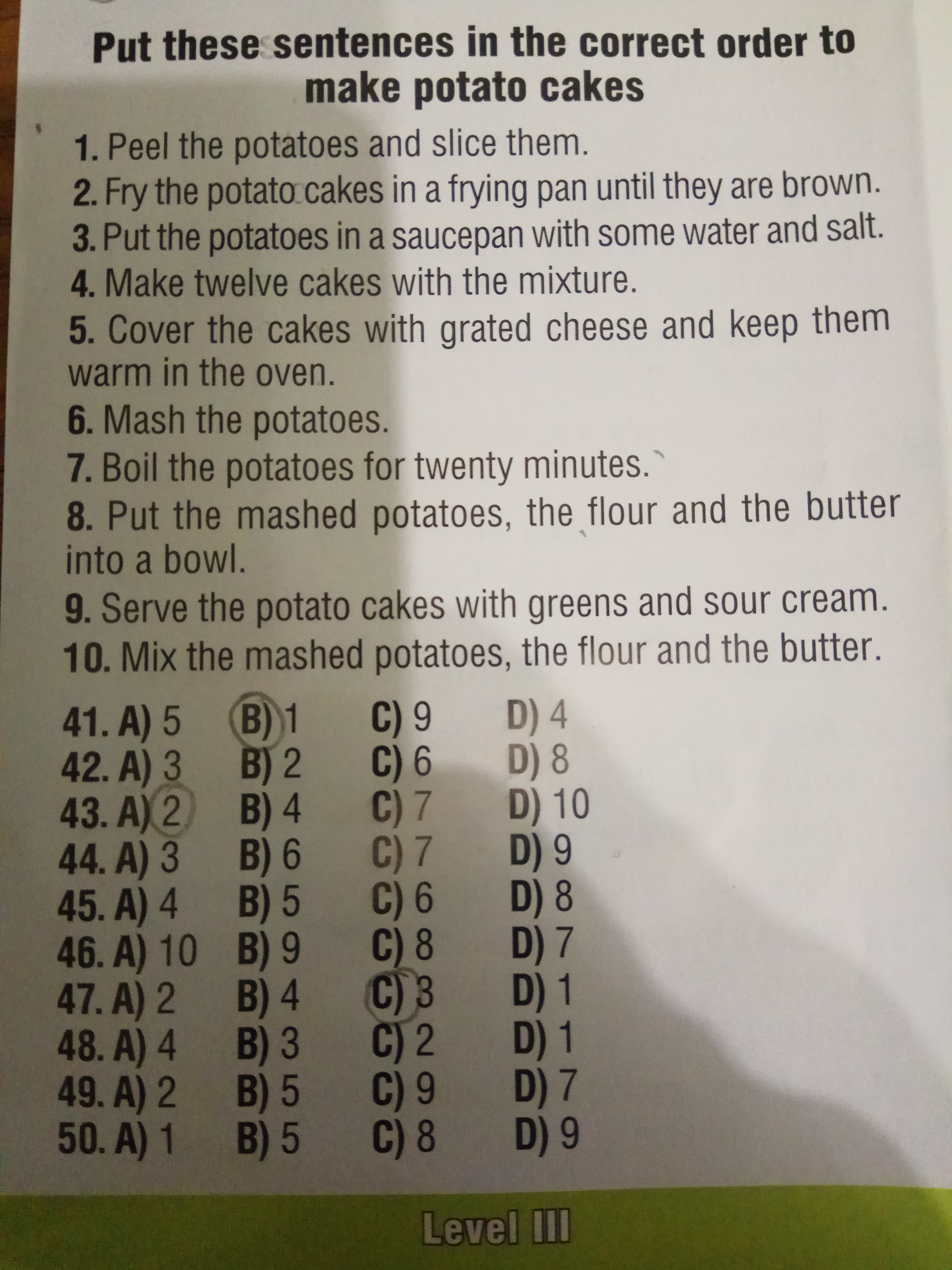put the sentences in the correct order to make potato cakes. Помогите пожалуйста выполнить правильно.