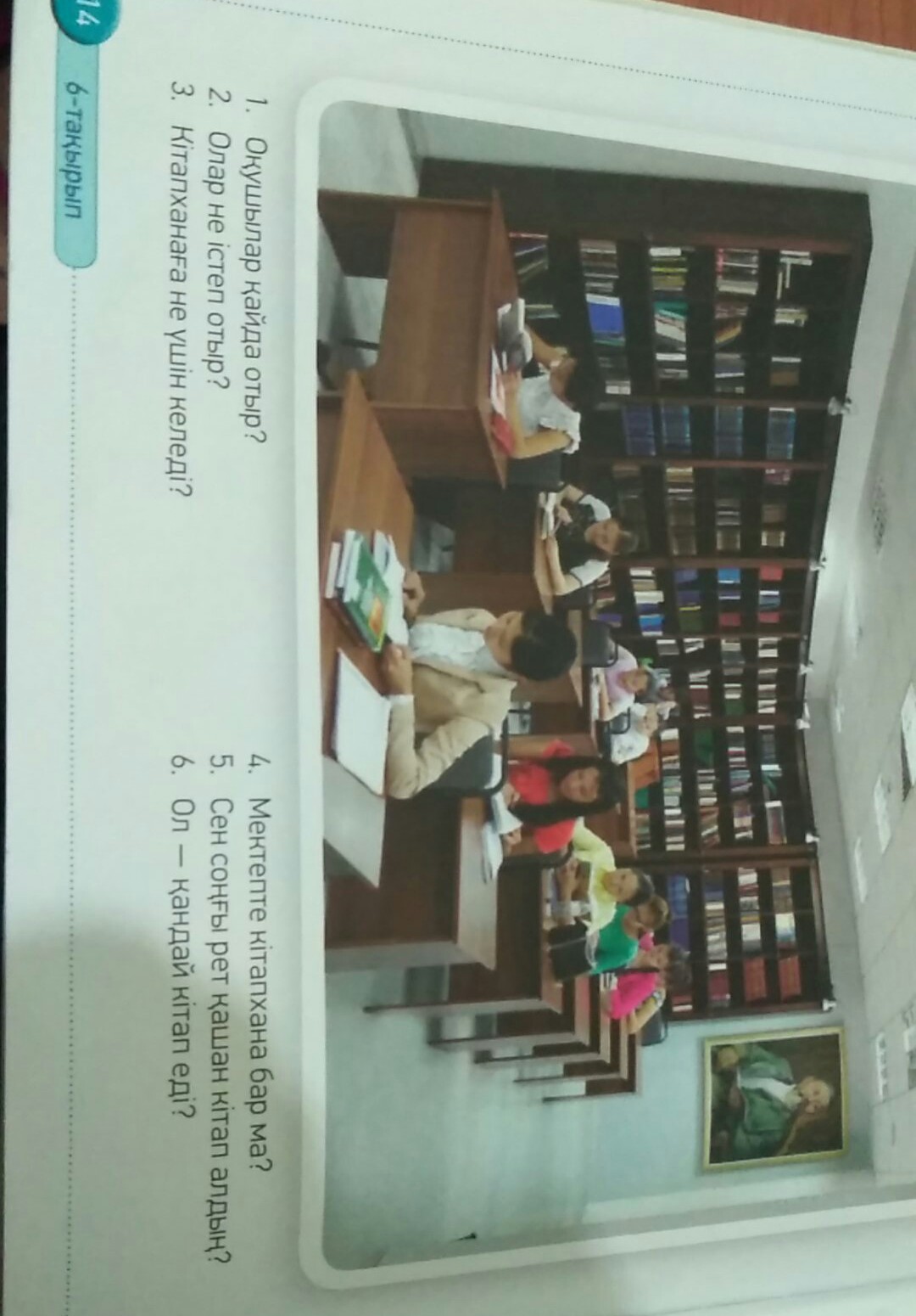 1.Где сидят ученики? Олар кітапханада отырып жатыр