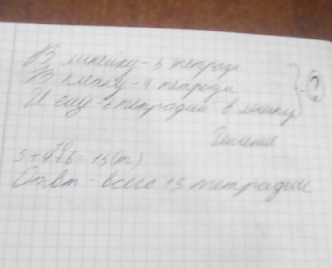 У Коли было 5 тетрадей в клетку и 4 тетрадей в линейку .Ему купили еще 6 тетрадей в линейку. Сколько всего тетрадей стало у Коли? Пожалуйста условие залачи и решение