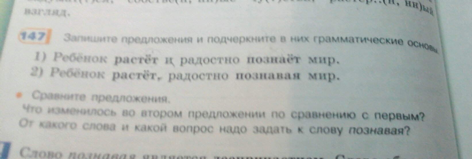 в 1 предложение грамматическая основа ребёнок растёт и познаёт, а во 2 Ребёнок растёт!