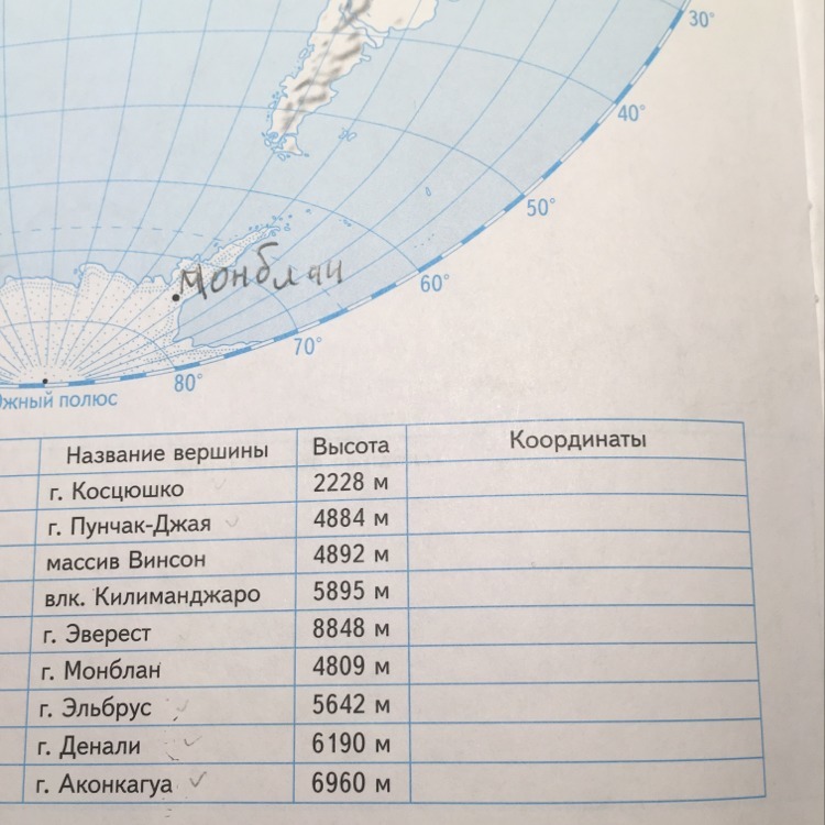 г. Монблан 4809м - 45° с.ш. и 7° в. д.