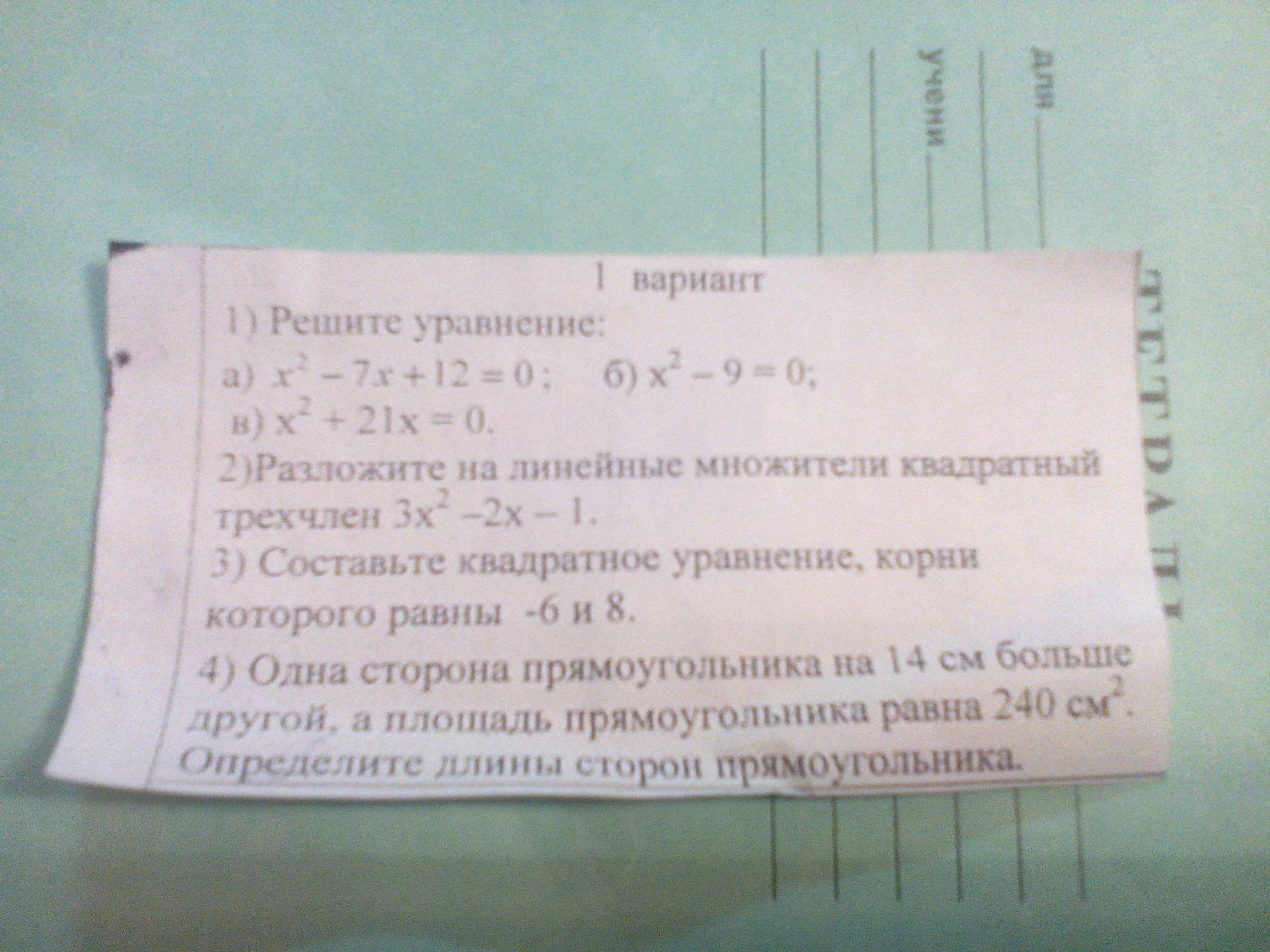 X2=(-b-^D):2a=(-14-36):2=-25не удовлетворяет условию задачи
