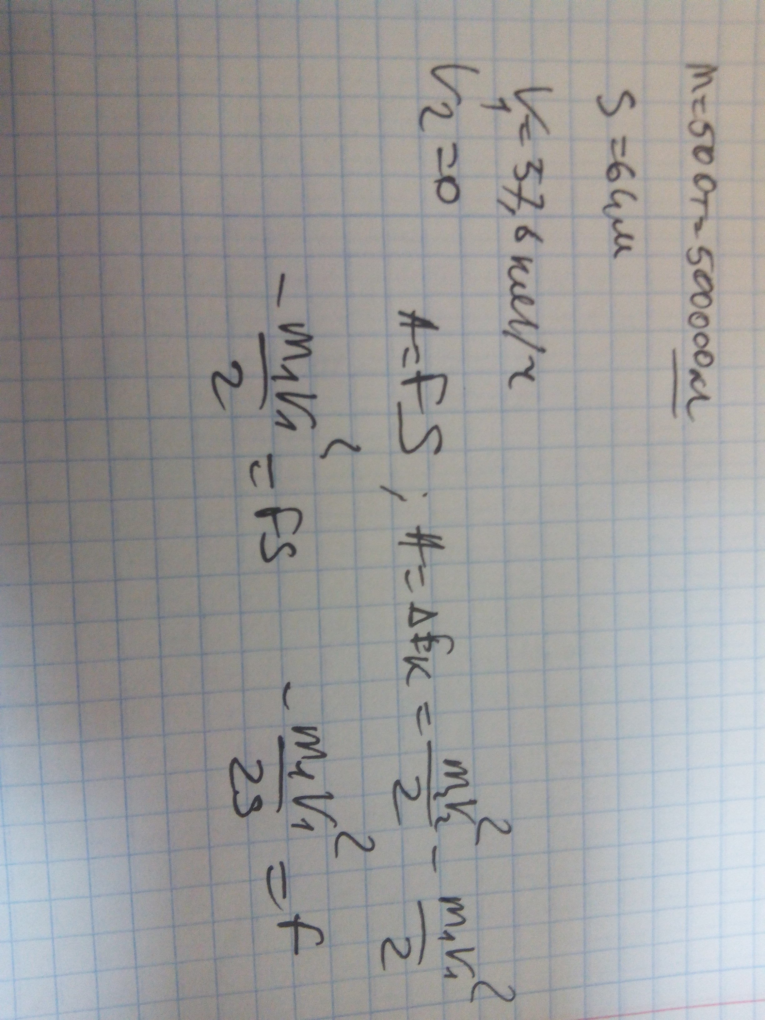 Поезд массой 500 т двигается с скоростью 57.6 км/ч определить силу торможения если тормозной путь поезда 64 м