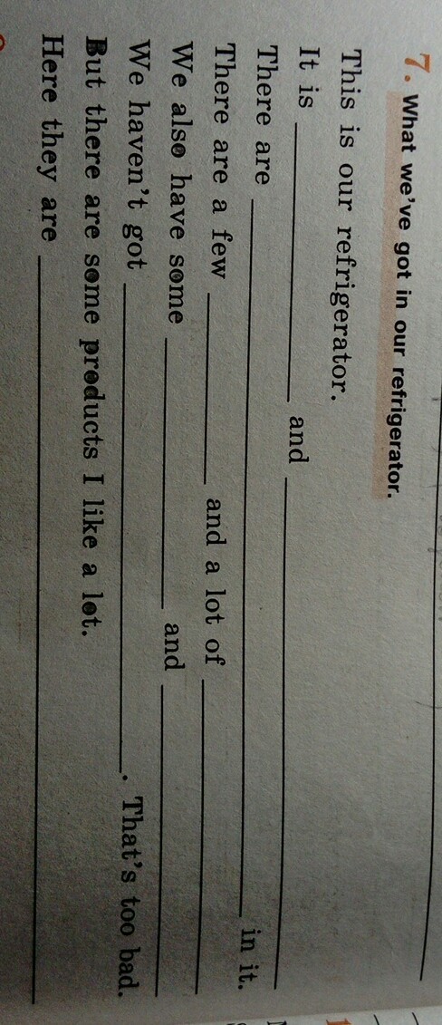 It's is big and white. There are some meat, milk, cheese, yoghurt in it. There are a few vegitables and a lot of dairy products. We also have some sausages and cold coffee. We haven't got some cheesecakes. That's too bad. But there are some products I like a lot. Here they are vegitables, milk, sausages, cheese.