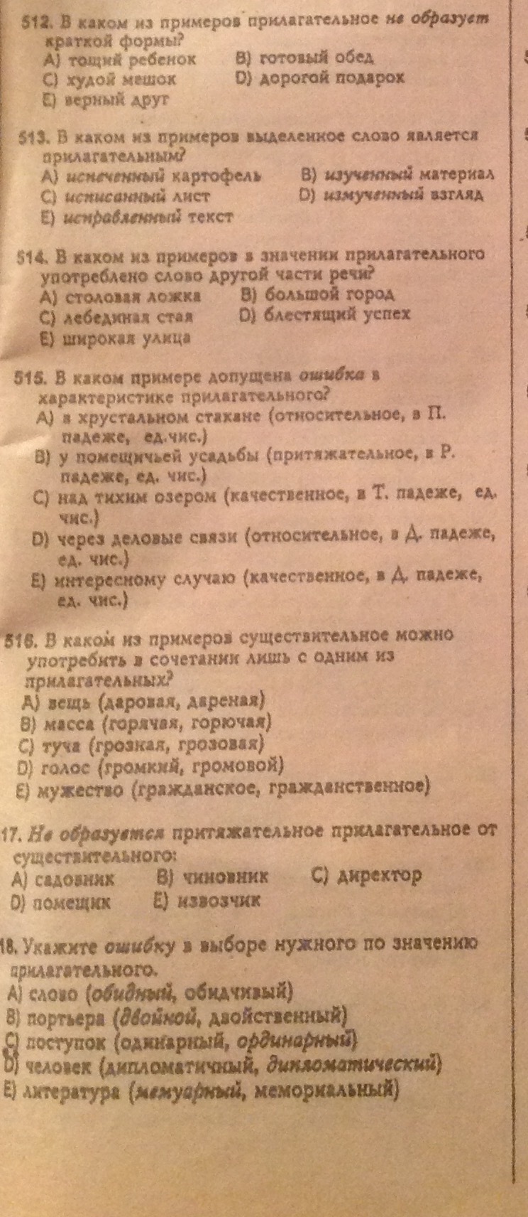 512. А)513. В)514. А)515. D)516. Е)517. A)518) А)