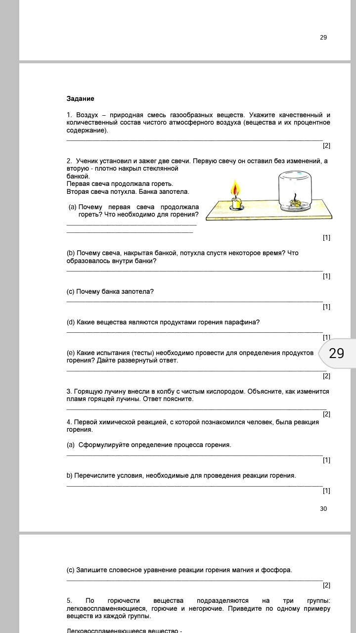 Г. Для горения парафина нужно тепло в виде огня и воздух