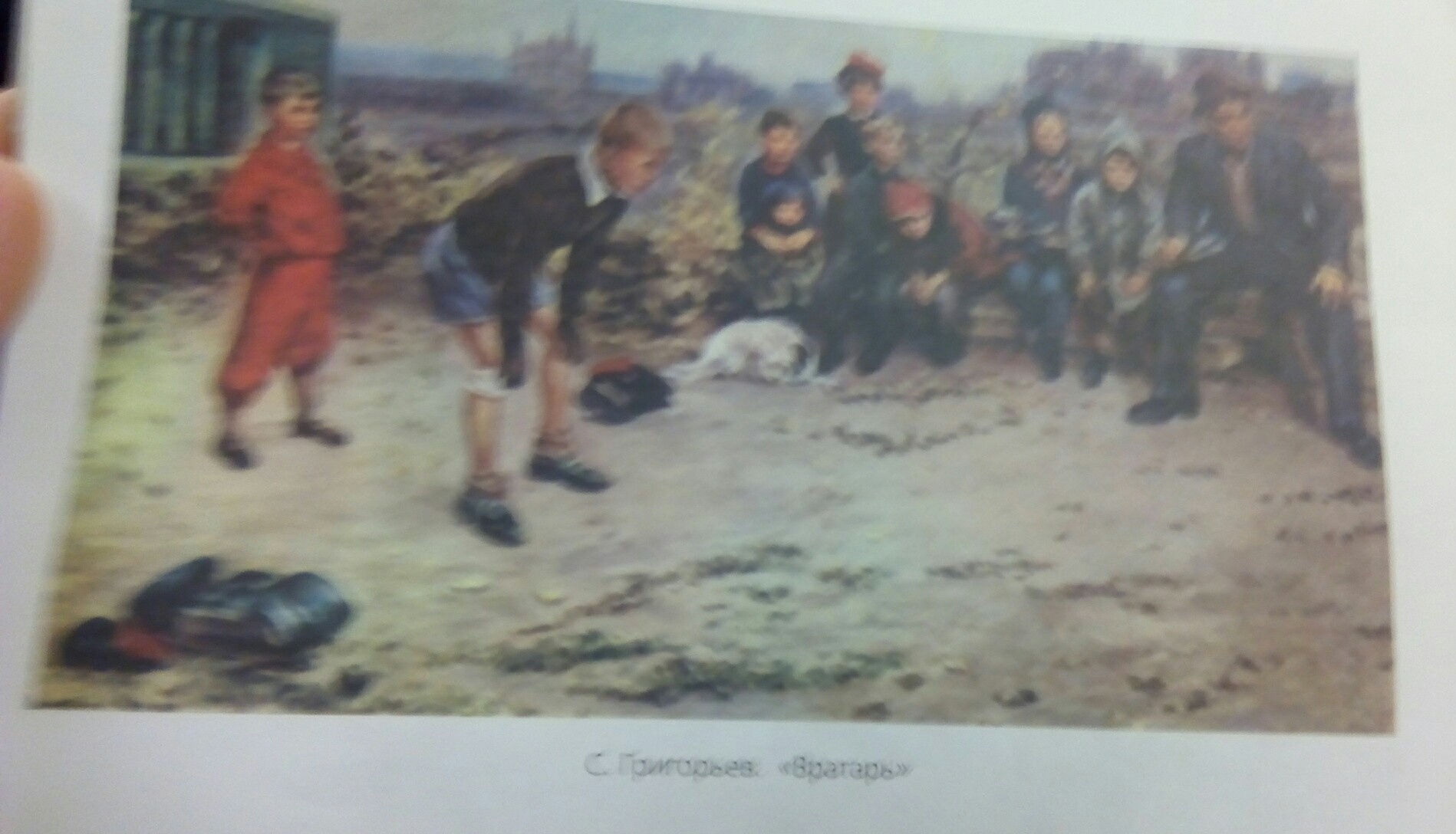 на этой картине мы видим как ребята играют в футбол и мальчику сейчас будут бить пенальти все в напряжении по лицу мальчика видно что он не совсем уверен в своих силах (сори что мало)