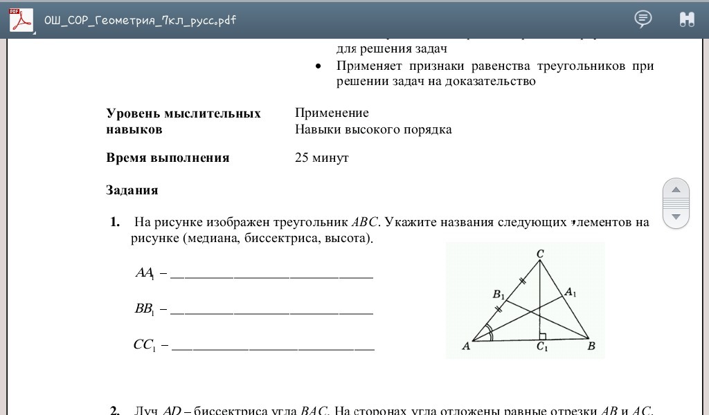 помогите сор по геометрии 2четверть пж помогите надо указать там медиану биссектриса и высоту срочно