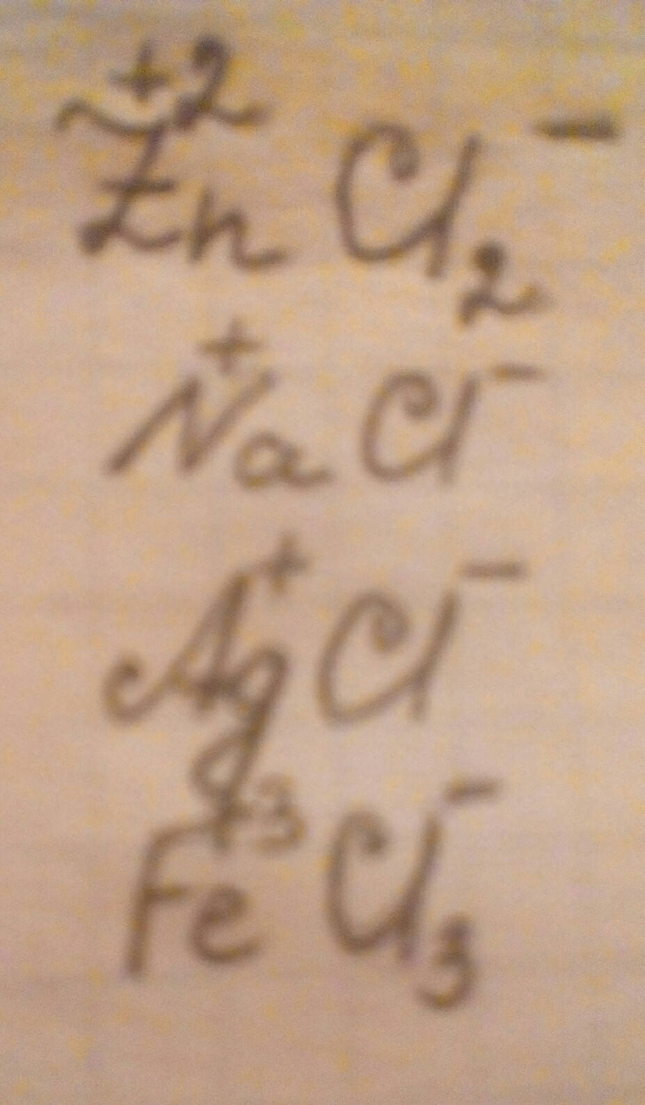 Составьте формулы хлоридов (соединений с хлором) метеллов: цинка, натрия, серебра, железа (III). Желательно с степенью окисления.