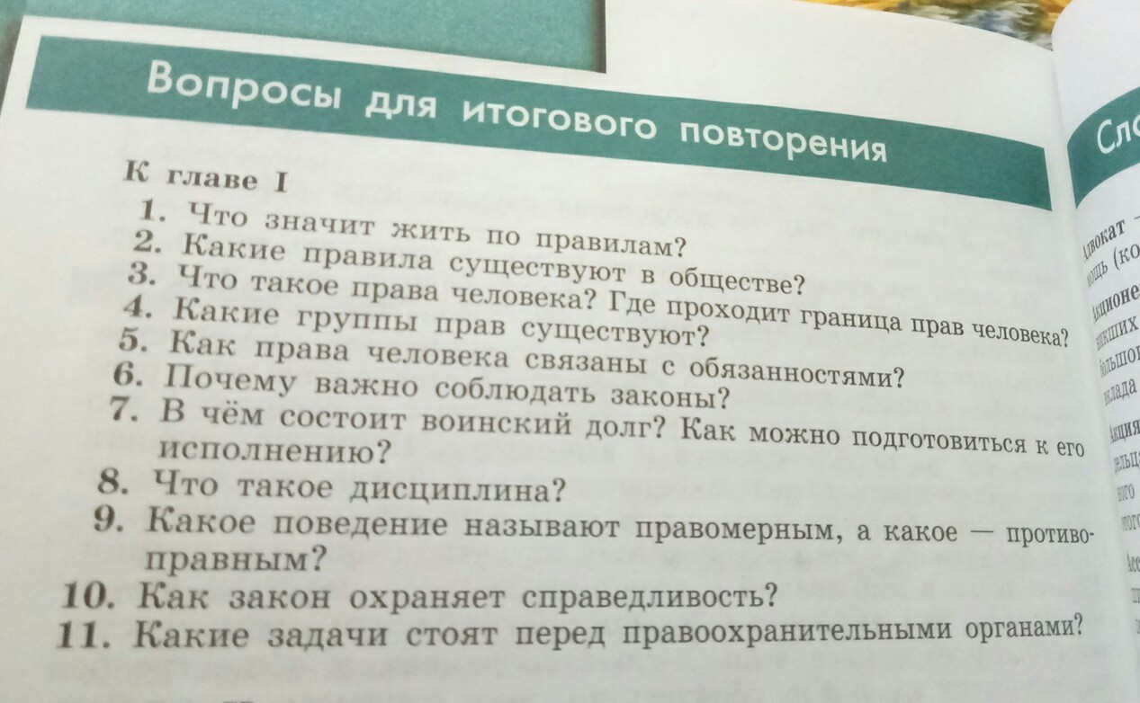 2)Нормы права - непосредственно важные правила, приписанные государством для обязательного исполнения, иначе послужит уголовная ответственность за недозволенный поступок. 3)Человек по кодексу имеет свои права, их много: свобода , образование, место жительства и тд, но граница- закон! Человек не должен нарушать законы, это и есть граница прав человека 4) Основные (конституционные) права человека и гражданина условно разделяют на три группы.