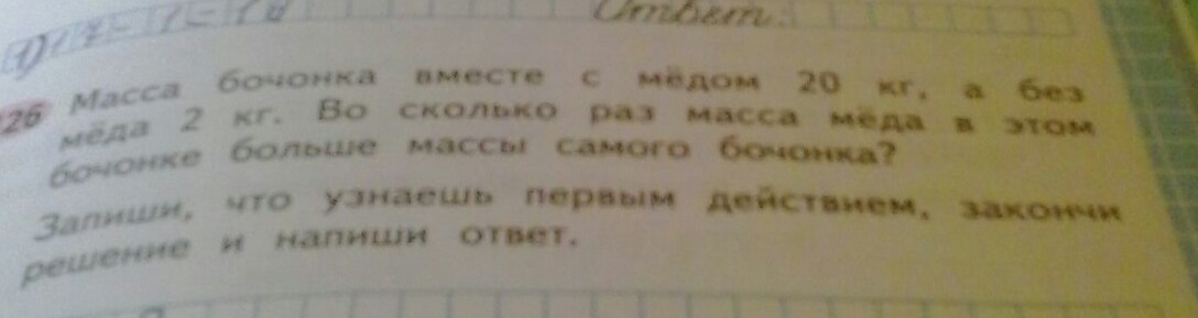 Ответ: масса мёда в 9раз больше массы бочёнка