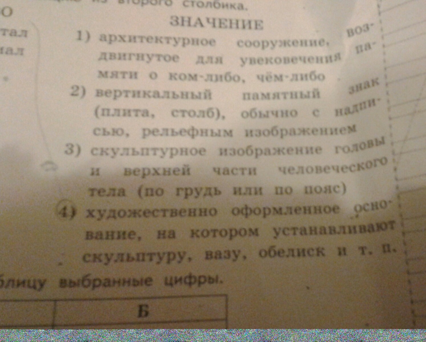 А4- пьедестал художественное оформленное основание;Б1- мемориал- архитектурное сооружение воздвигнутая для увековечения памяти или памятное место.