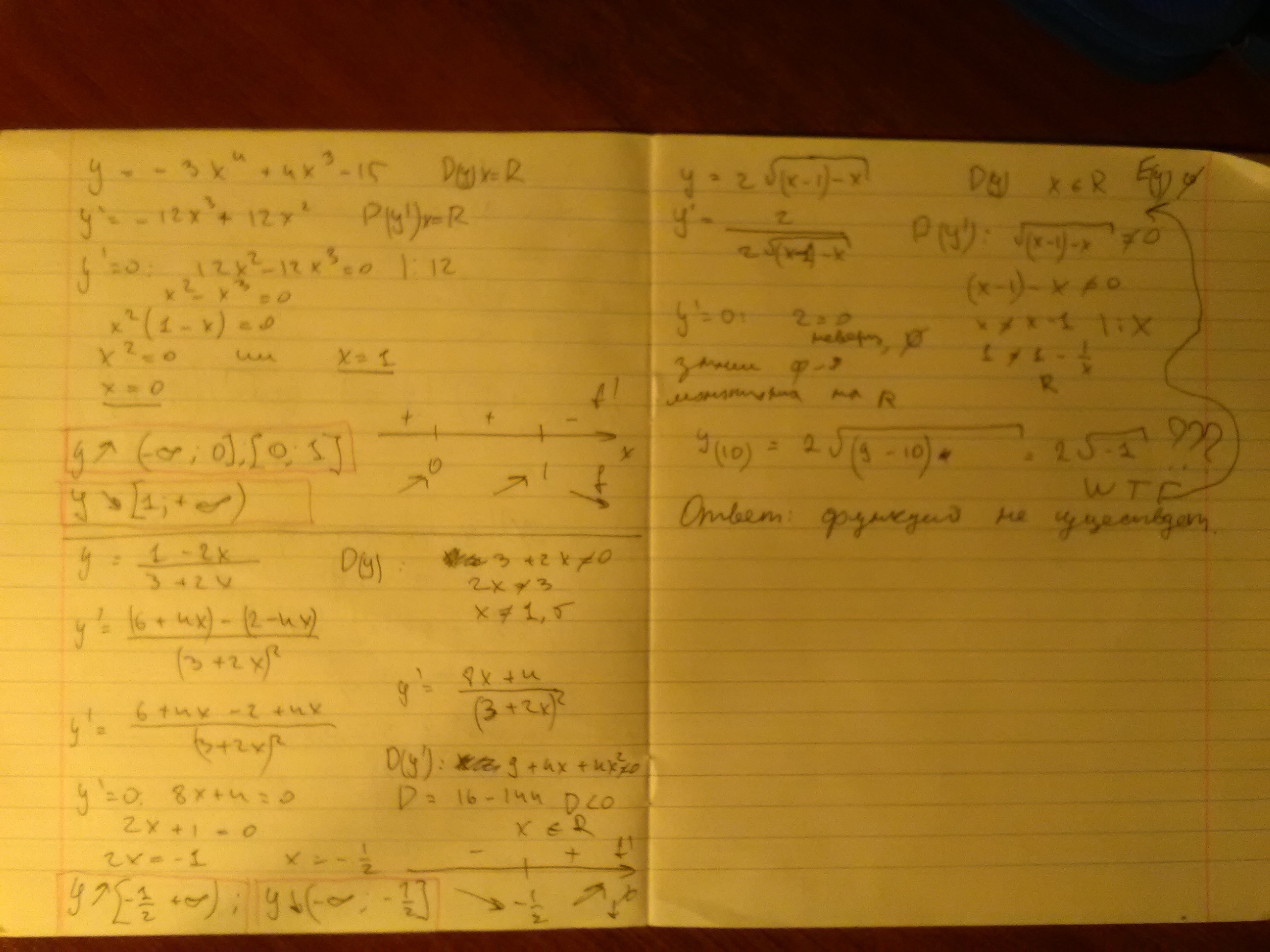Найдите промежутки возрастания и убывания функции у= -3х^4+4x^3-15